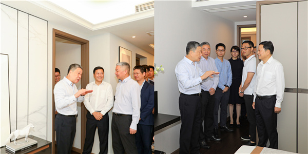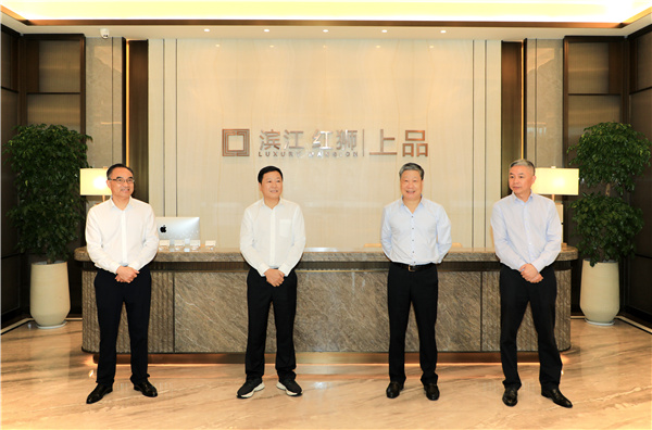 10月16日,在中國地產23強濱江集團與中國水泥企業10強紅獅集團聯袂匠筑的濱江紅獅|上品項目樣板房開放前夕,濱江集團董事長戚金興與紅獅集團董事長章小華親臨樣板房現場檢驗指導。雙方對項目設計、施工、景觀、裝修等品質給予高度肯定,共同期待項目早日建成交付,向紅獅員工和業主展示濱江無可挑剔的匠心之作,讓每一次回家都是一次品質的巡禮。