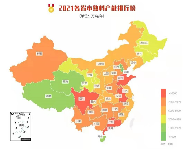 2、數據統計截至2021年12月31日已建成投產的新型干法熟料生產線產能,不統計其他窯型及粉磨站產能。