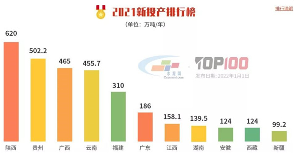 新投產排行榜:全國新投產熟料產能3183.7 陜西 貴州 廣西位列前三甲