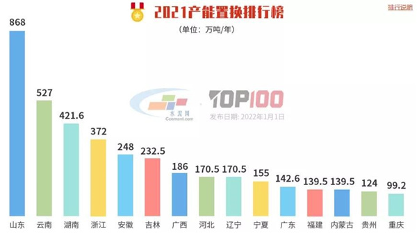 產能置換排行榜:全年置換熟料產能3995.9萬噸 三年來最低
