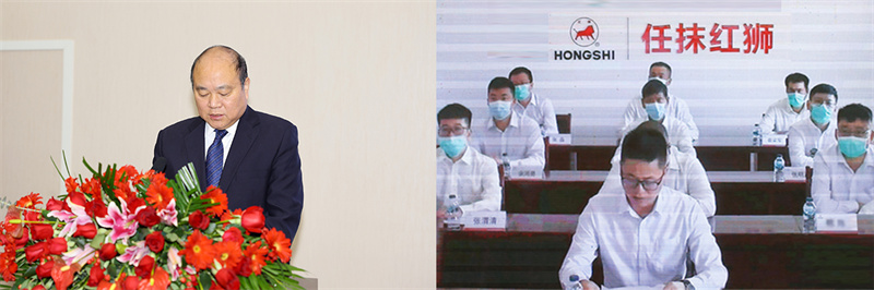 集團領導章錦鴻、章旭喜、范煒剛、章經忠、章獻宏、魯雄偉出席會議。集團部室、區域公司、子公司總經理,獲獎單位及員工代表現場參會。浙江紅獅、鄰水紅獅、高安紅獅、老撾萬象紅獅、尼泊爾紅獅希望、印尼任抹紅獅等海內外80余家子公司中層及以上人員2000余人視頻參會。