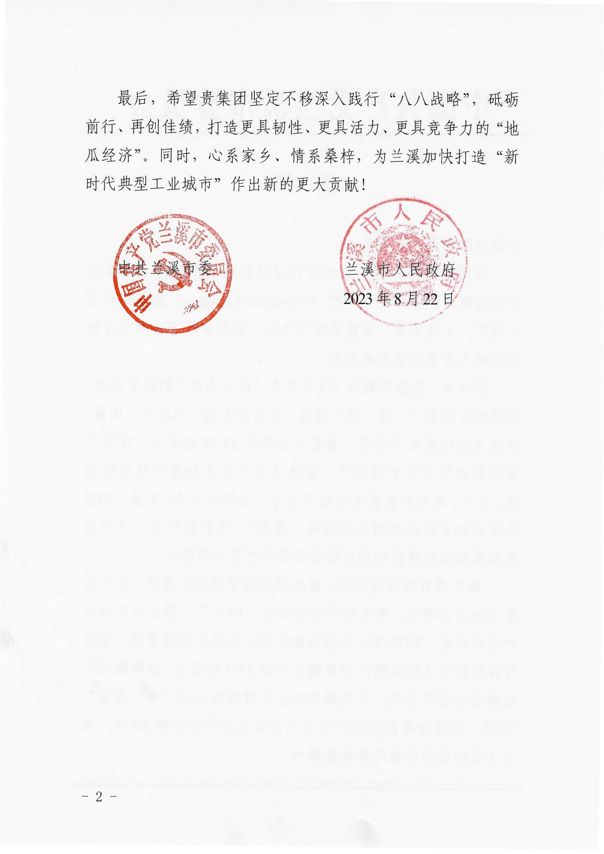 集團總部所在地蘭溪市委市政府特地發來賀信,稱贊紅獅集團“義利并舉、以義為先”的投資理念,積極承擔社會責任,參與改善當地公益事業,有力提升百姓福祉,樹立了蘭溪企業在海外的良好形象。同時鼓勵集團堅定不移深入踐行“八八戰略”,打造更具韌性、更具活力、更具競爭力的“地瓜經濟”,心系家鄉、情系桑梓,為蘭溪加快打造“新時代典型工業城市”作出新的更大貢獻!