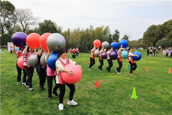有妳才精彩”為主題,得到了全體女員工的熱烈響應(yīng)。活動開始前,教練先帶領(lǐng)女員工們進(jìn)行熱身律動和激情節(jié)拍,通過簡單趣味的運(yùn)動,讓大家愉悅身心,充分熱身,為團(tuán)隊(duì)趣味比拼做好準(zhǔn)備。趣味競技活動分為幸運(yùn)彩球、筑塔、旋風(fēng)跑、毛毛蟲競速等四個比賽項(xiàng)目,教練把女員工分成8個小隊(duì)進(jìn)行比賽。
