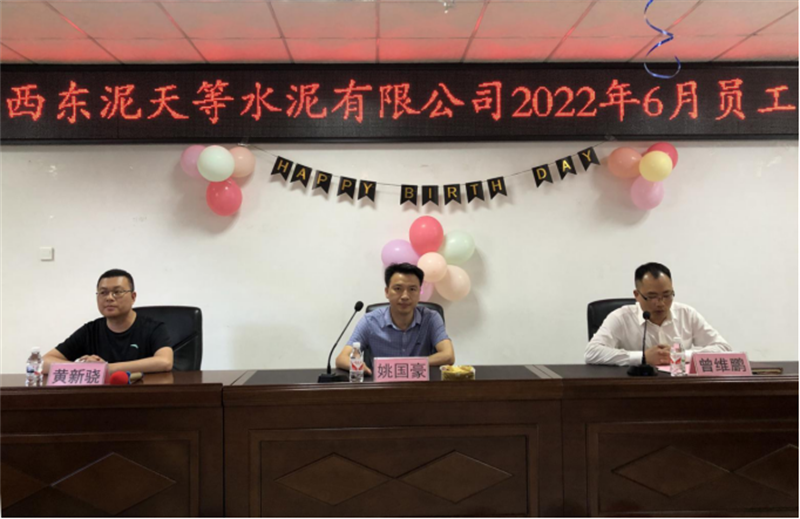 繁忙的工作之余感受到公司的關心與關愛,能夠使員工增進彼此的了解,能感受到大家的歡聲笑語。6月25日下午16:30天等水泥在辦公樓大會議室為54名員工舉辦了溫馨的集體生日會,生日會聽取各職工意見建議,得到廣泛關注與支持,賦予我們壽星久違的儀式感,在場的每位壽星都懷揣著激動心情、滿懷感激、臉上洋溢著幸福的笑容。