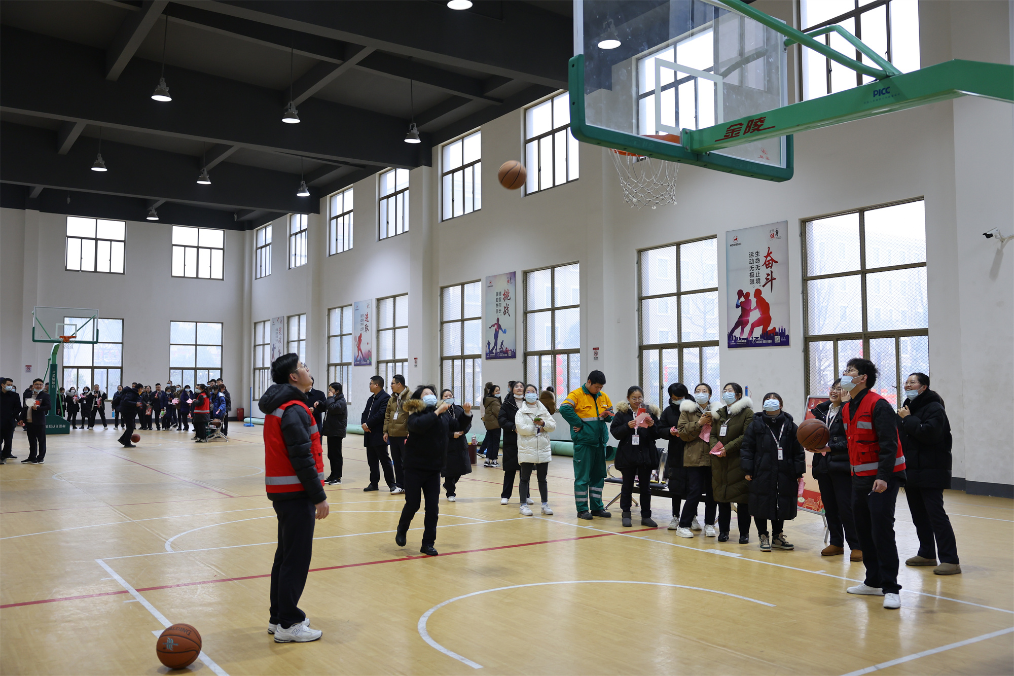 強(qiáng)身健體,堅(jiān)持鍛煉,通過(guò)“趣味投籃”、“開(kāi)心托球”兩個(gè)球類小比賽讓大家參與到籃球與乒乓球的場(chǎng)地中來(lái),罰球點(diǎn)處投籃球的精準(zhǔn)度與運(yùn)乒乓球跑步到終點(diǎn)的平衡力,都體現(xiàn)著參與者的體能,鼓舞聲更是不絕于耳。