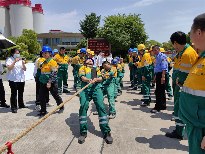 正午12點,參賽人員集結完畢,比賽正式拉開序幕。首先是按照領隊抽簽順序進行六輪淘汰賽,“三、二、一,開始!”裁判一聲令下,發運二隊和生產、原料隊,使出全身的力氣往后拔,有的一只腳固定在前,另一只腳拼勁全力往前踢,有的兩只腳以扎馬步的姿勢穩穩的站著。邊上的啦啦隊員們,不停地喊著“加油!加油!加油!一、二、三,拉!”除了手上沒有繩子,啦啦隊的氣勢并不輸參賽選手。